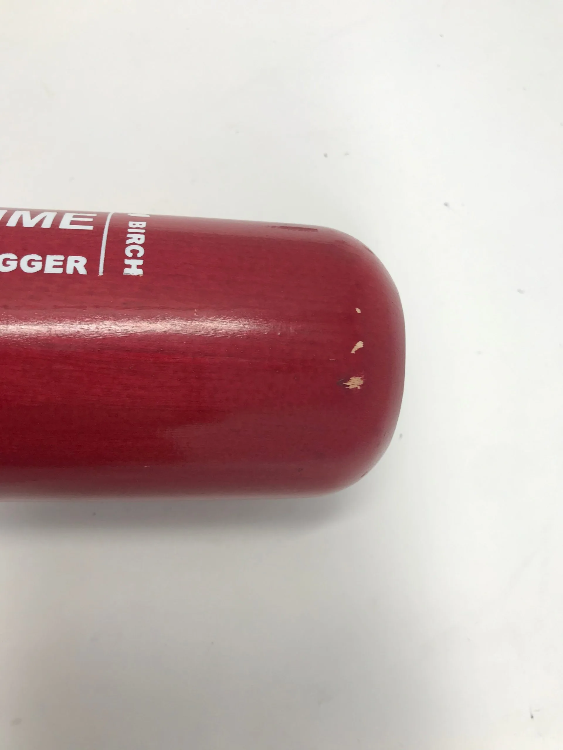 All new and never hit with once, this is a great bat. Its got an awesome finish and the quality is there! Hurry, we only have 1 and it will go quickly! An all around great deal. This is a MLB prime Birch bat! Its all red and even has an ink dot! bat has a couple light scratches from storage.